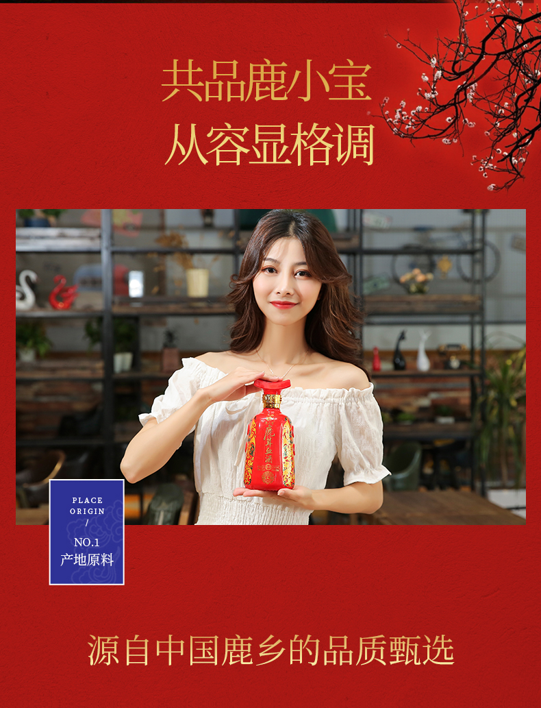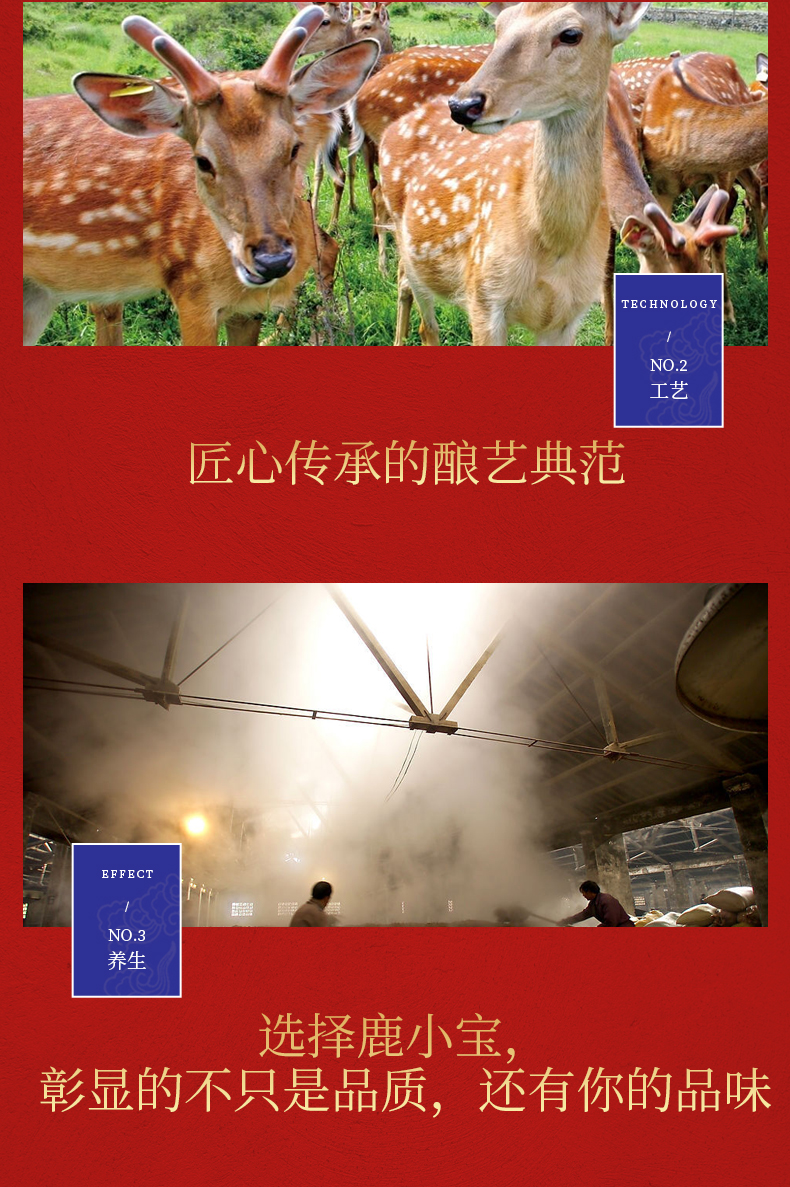此产品为双瓶鹿宝酒,由鹿鞭酒x1,鹿茸血酒x1,包装选用中国红皮质材质,配置一对鹿头酒杯,整体视觉更加精美.