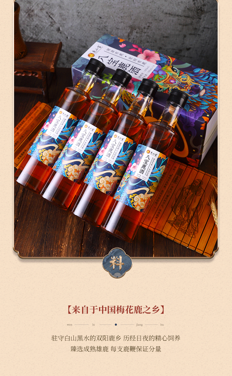 鹿小宝品牌----此产品为八宝鹿酒,即为电商爆款,小而强悍,送礼更大气,自饮送礼之上选.
